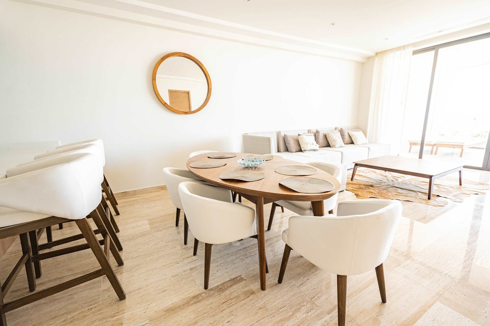 If you seek 5-star amenities and unparalleled luxury and comfort, this penthouse apartment is perfect for you! Immerse yourself in a world of tranquility and comfort at Mistiq Los Cabos. With stunning ocean views and three spacious bedrooms, each with an ensuite bathroom, this apartment offers everything you need for an unforgettable vacation. At Mistiq, you'll find all the essentials for a perfect getaway: two impressive pools, a fully equipped gym, and a shared BBQ area next to the pool!